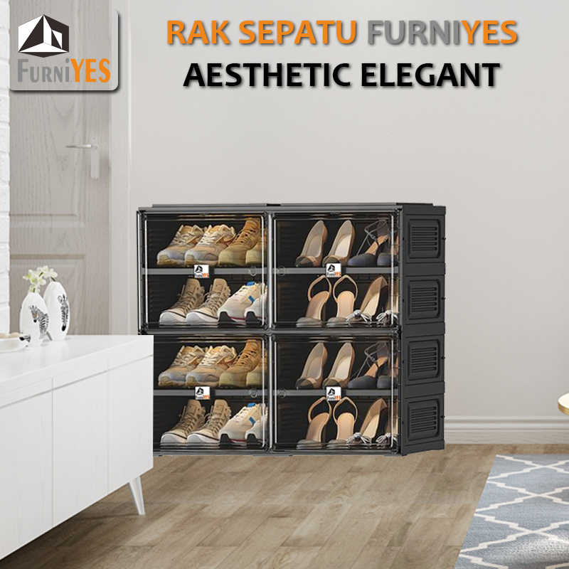 FurniYES Rak Sepatu Susun 4 Tingkat